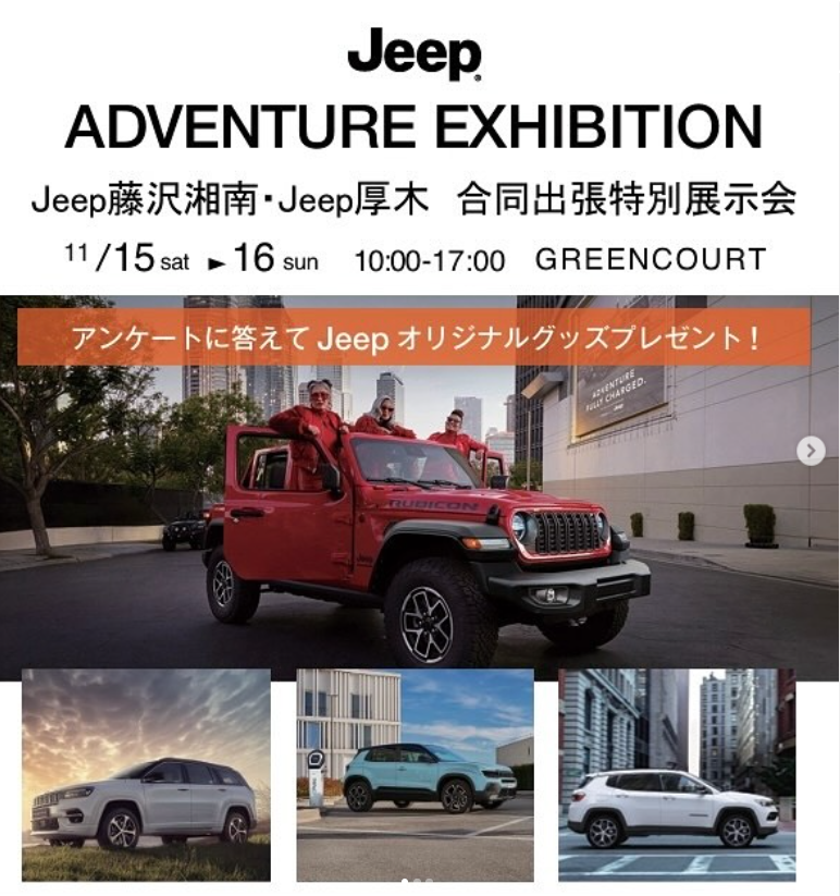 ジープ藤沢湘南とジープ厚木合同出張特別展示会が開催されます♡